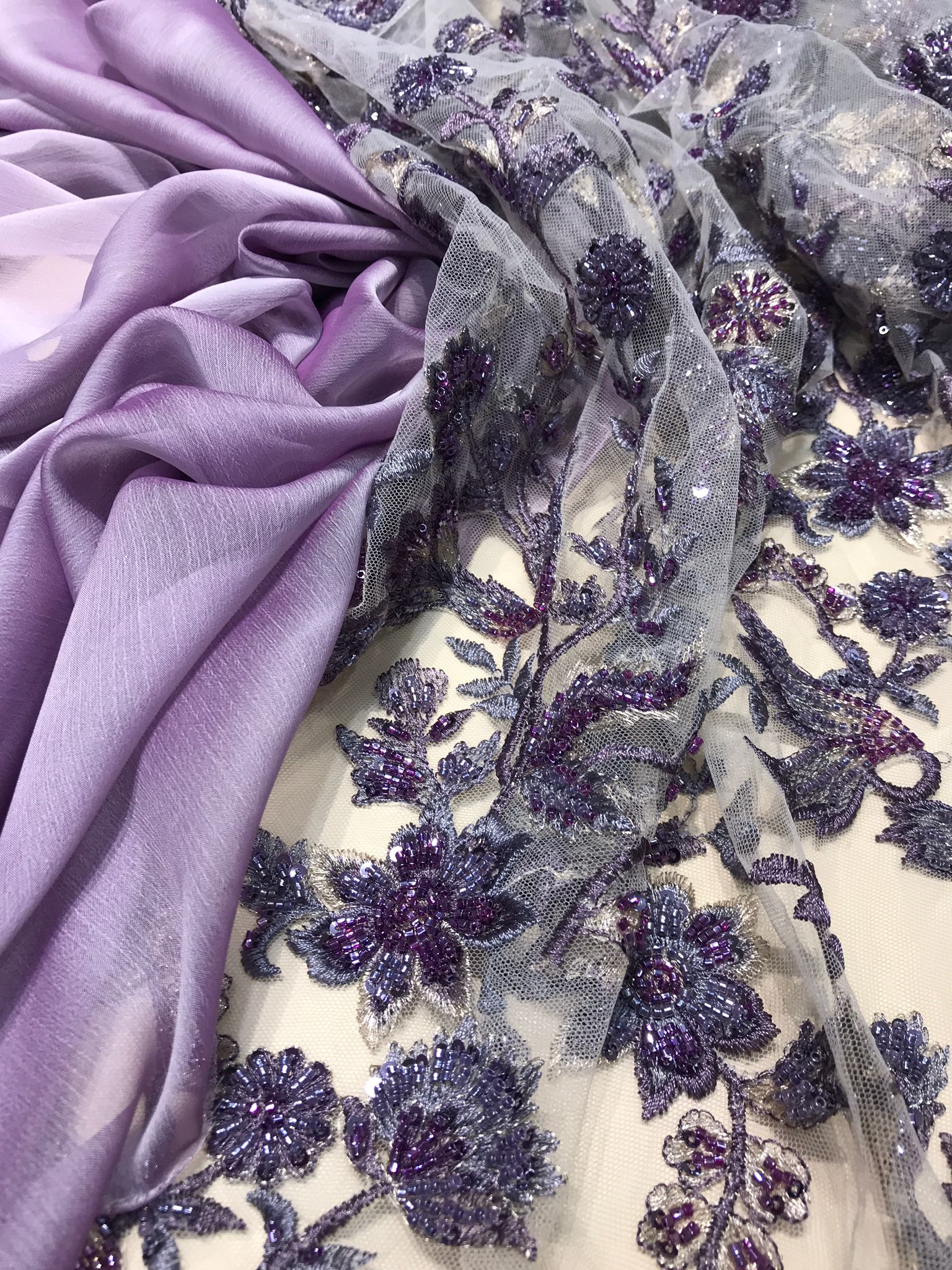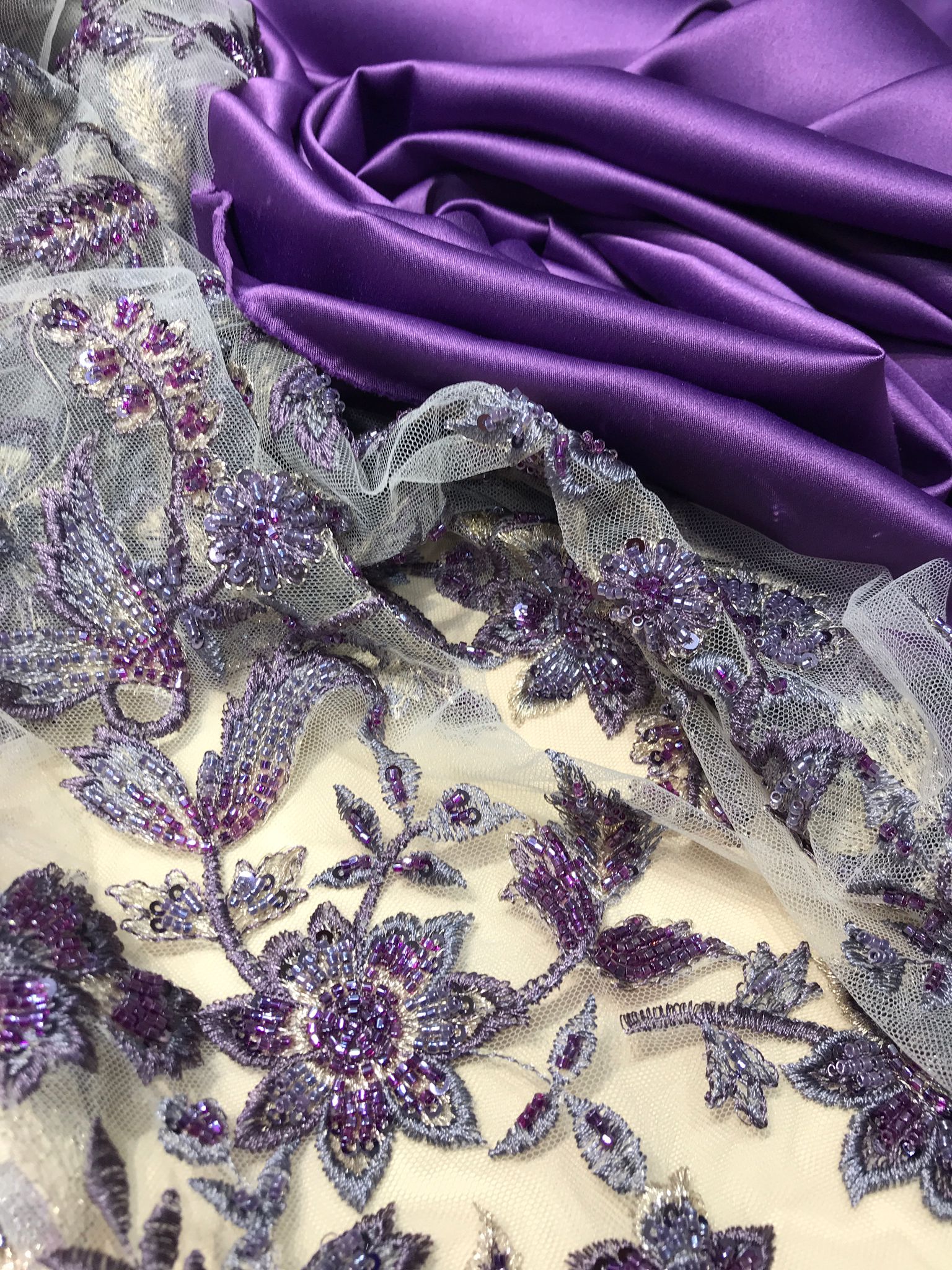 Dantelă cu mărgele și paiete