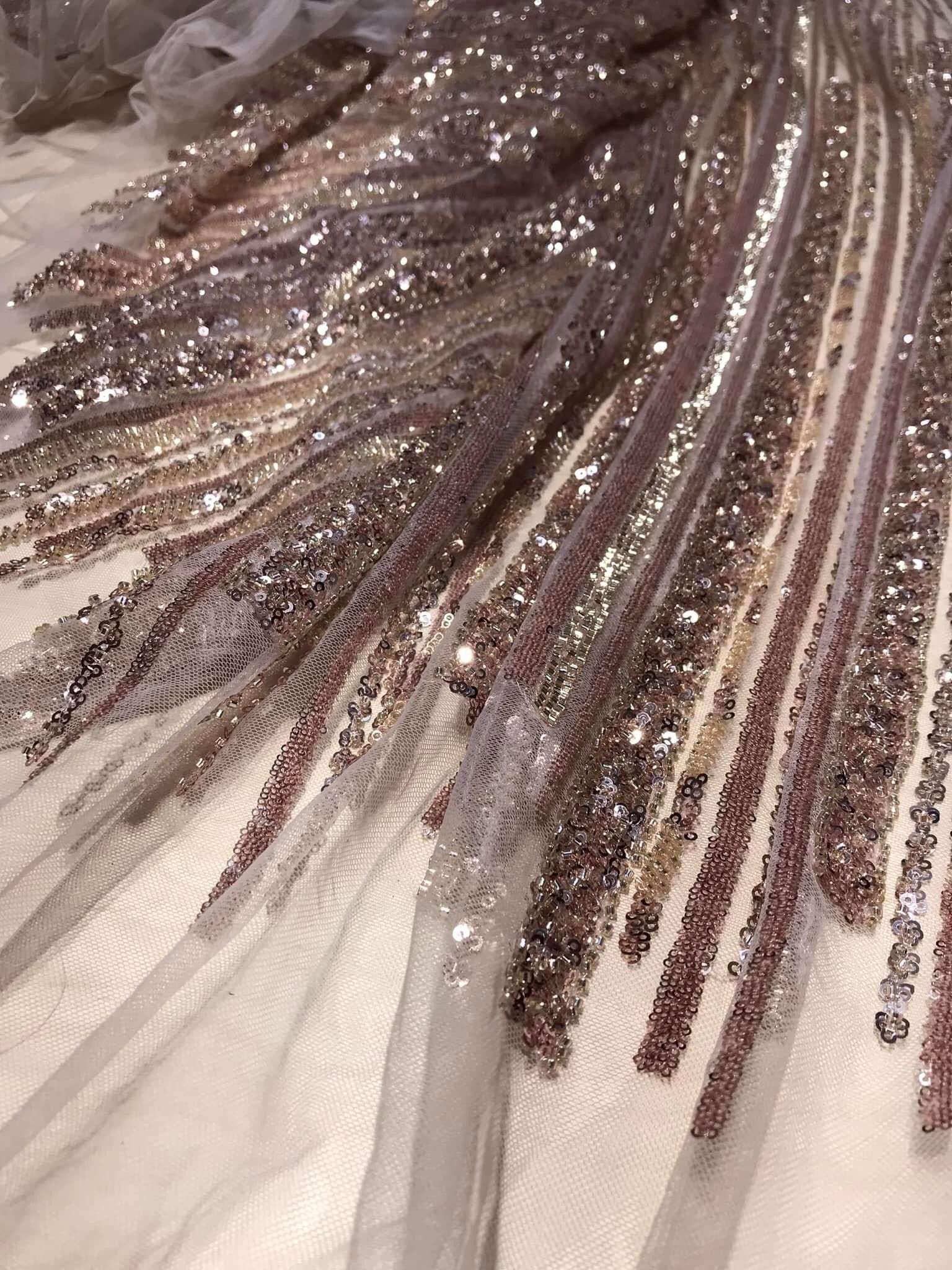 Dantela cu șiruri de mărgele și paiete este o tehnică specială de dantelă care implică încrustarea sau