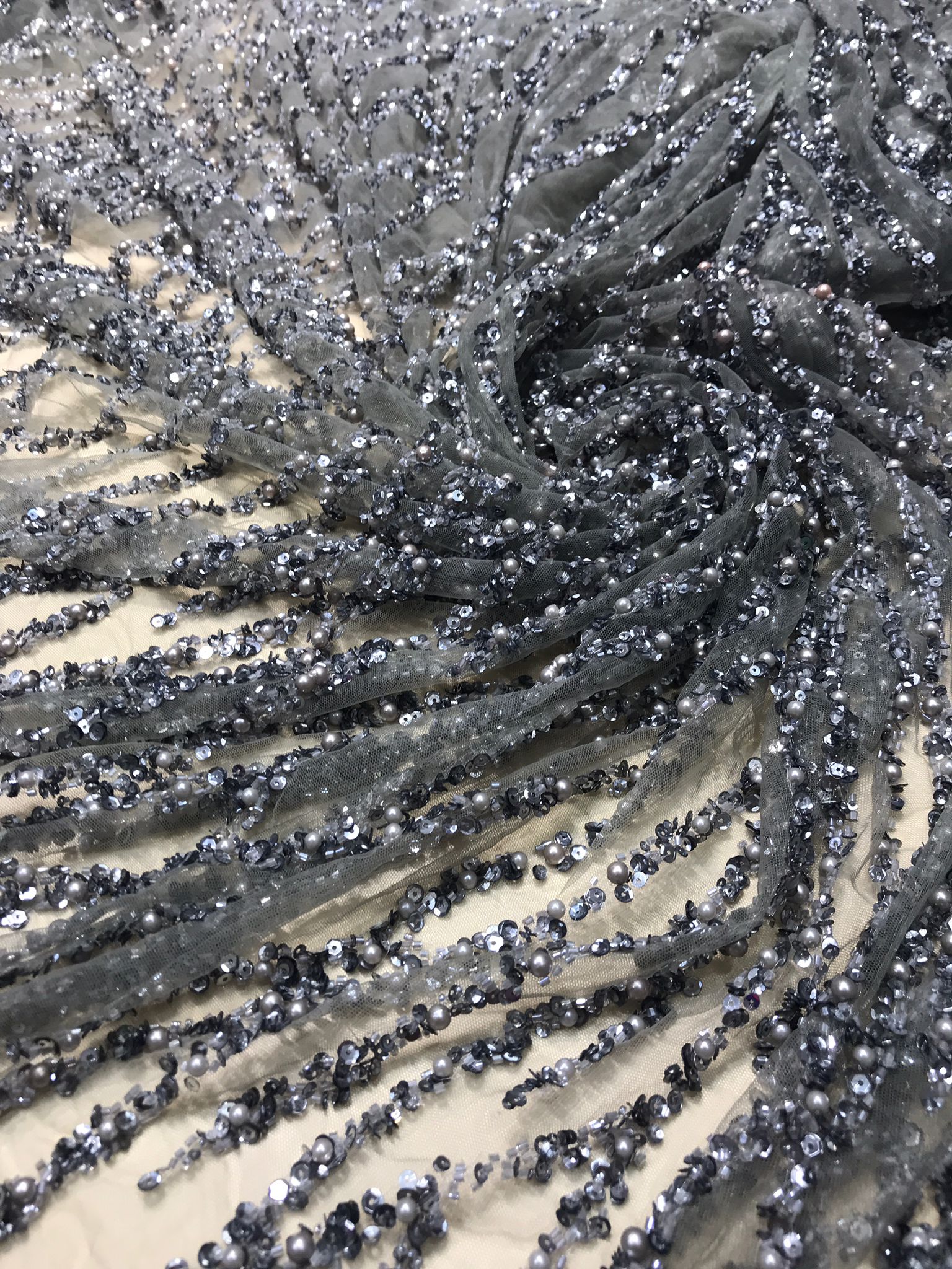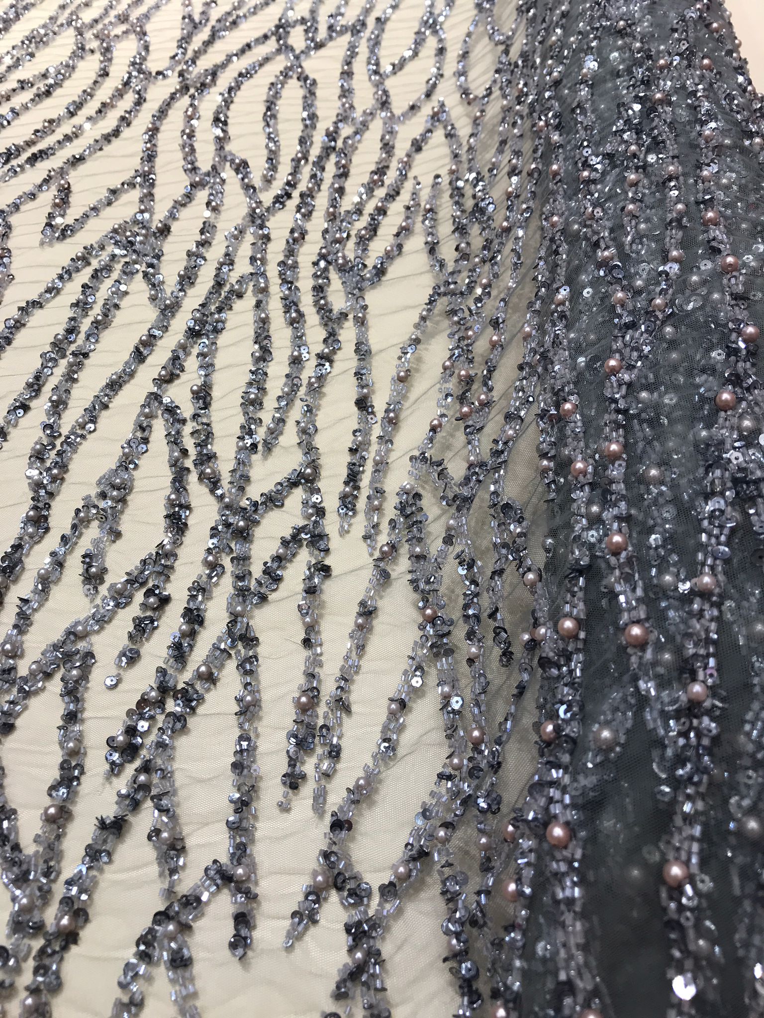 Dantela cu șiruri de mărgele și paiete este o tehnică specială de dantelă care implică încrustarea sau