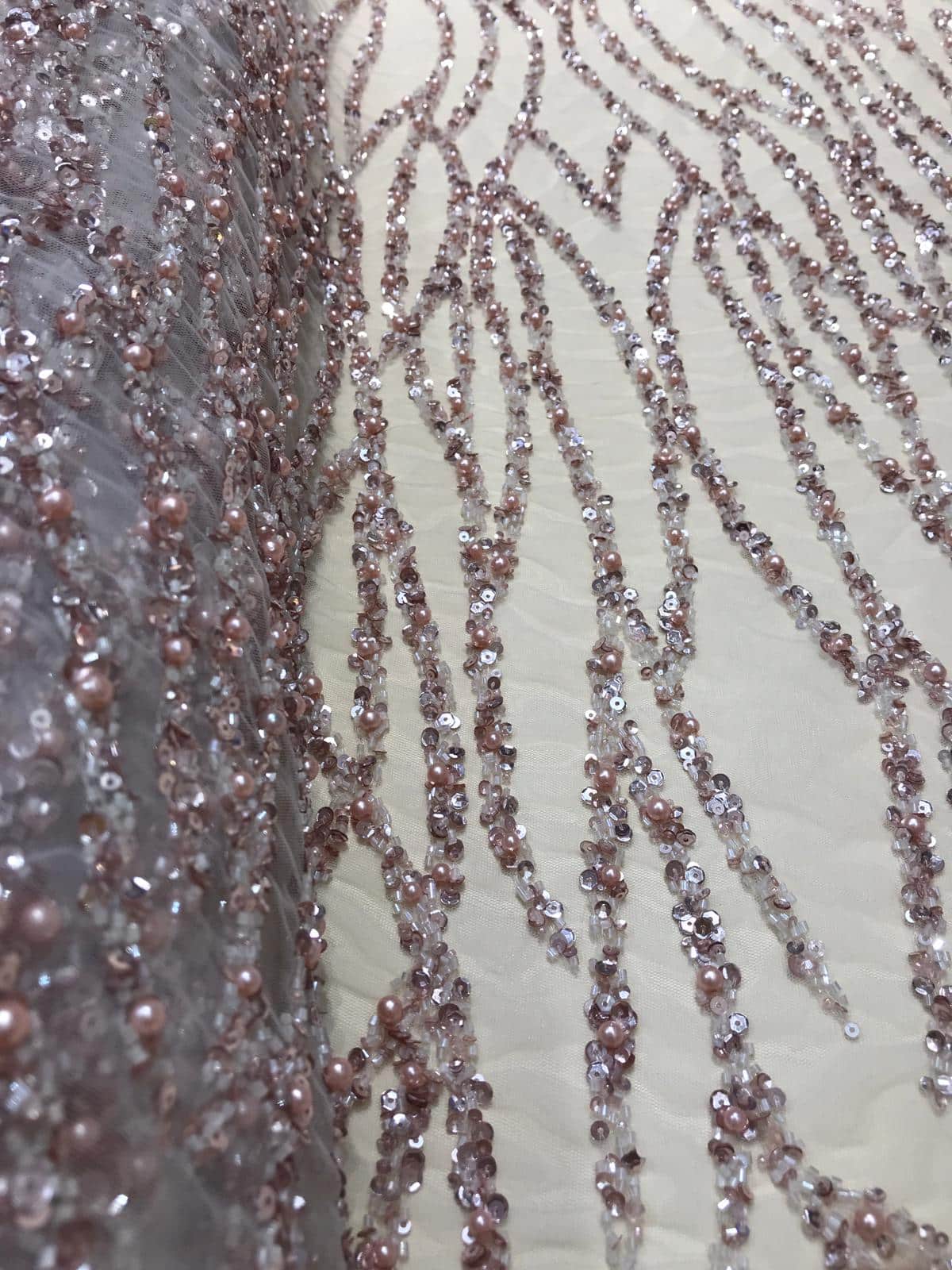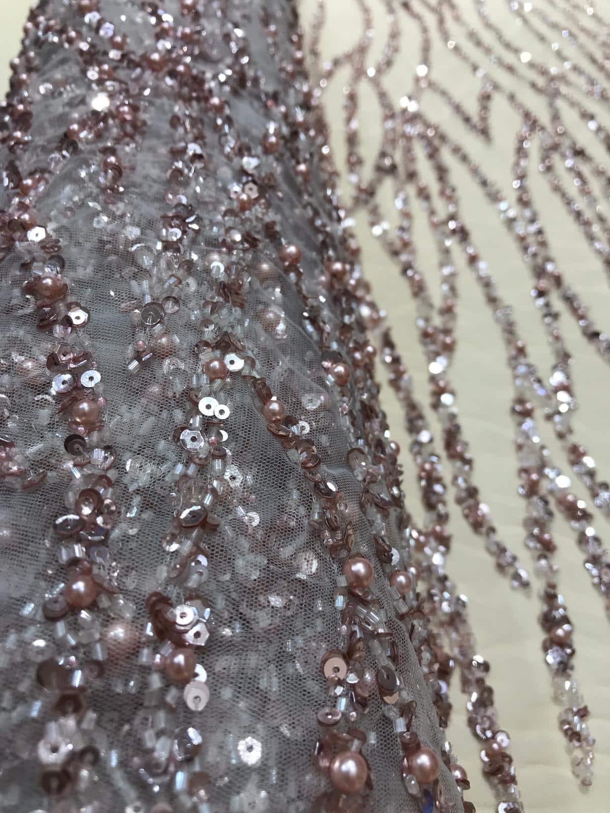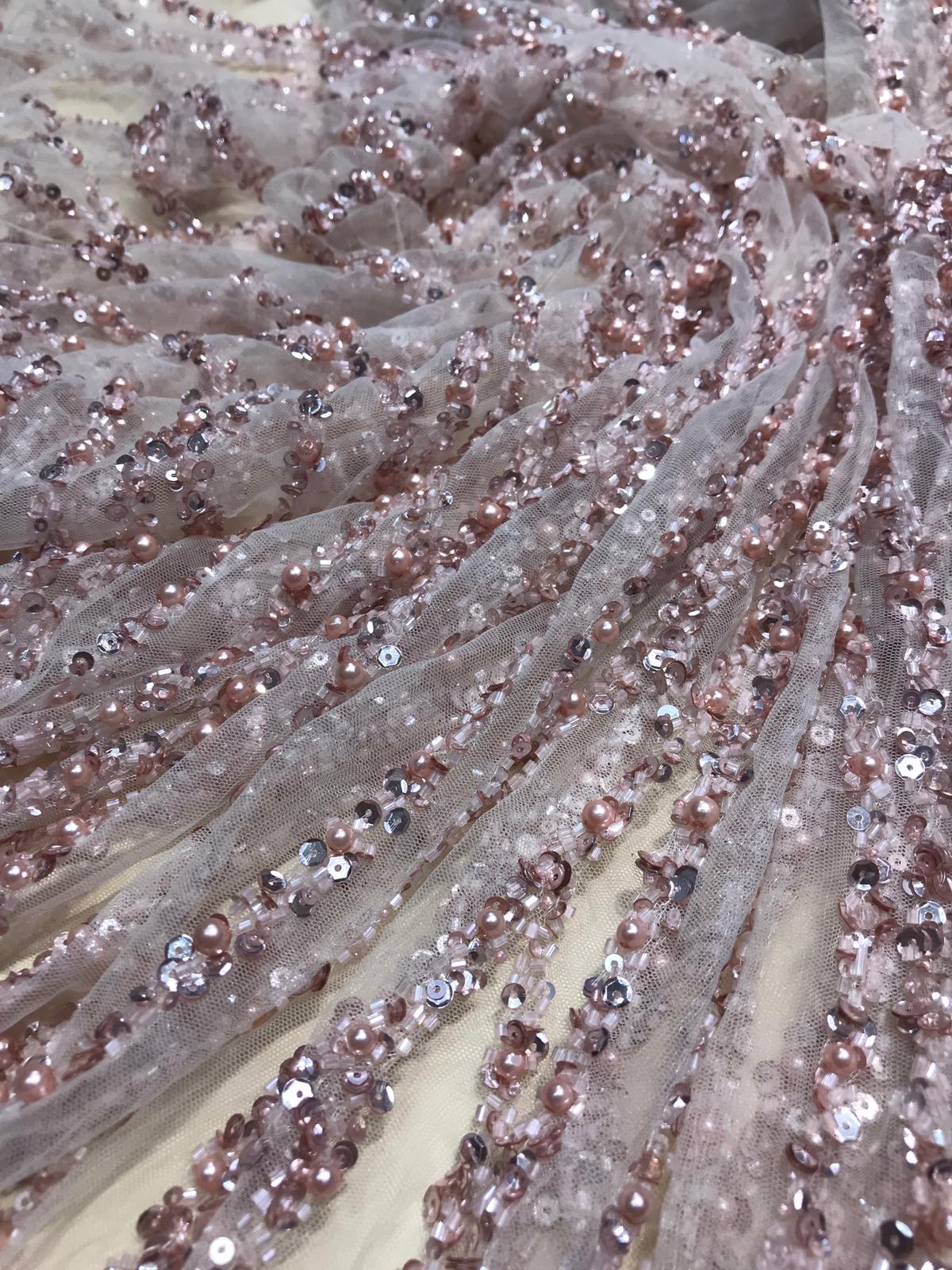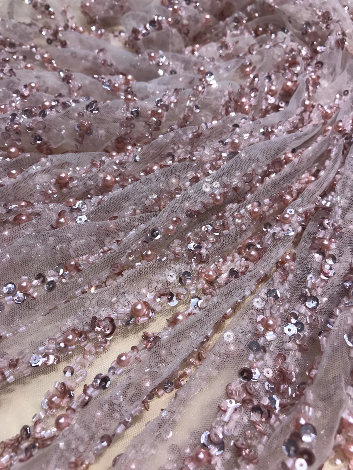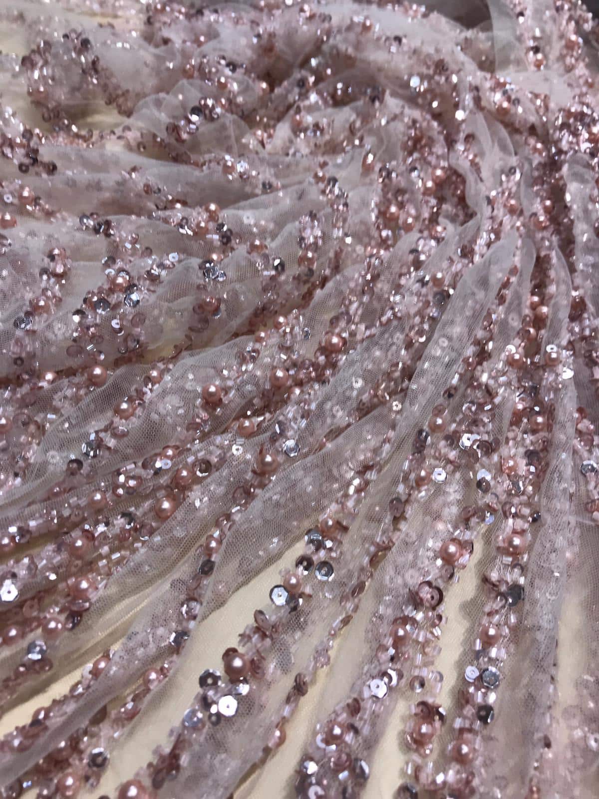 Dantela cu șiruri de mărgele și paiete este o tehnică specială de dantelă care implică încrustarea sau
