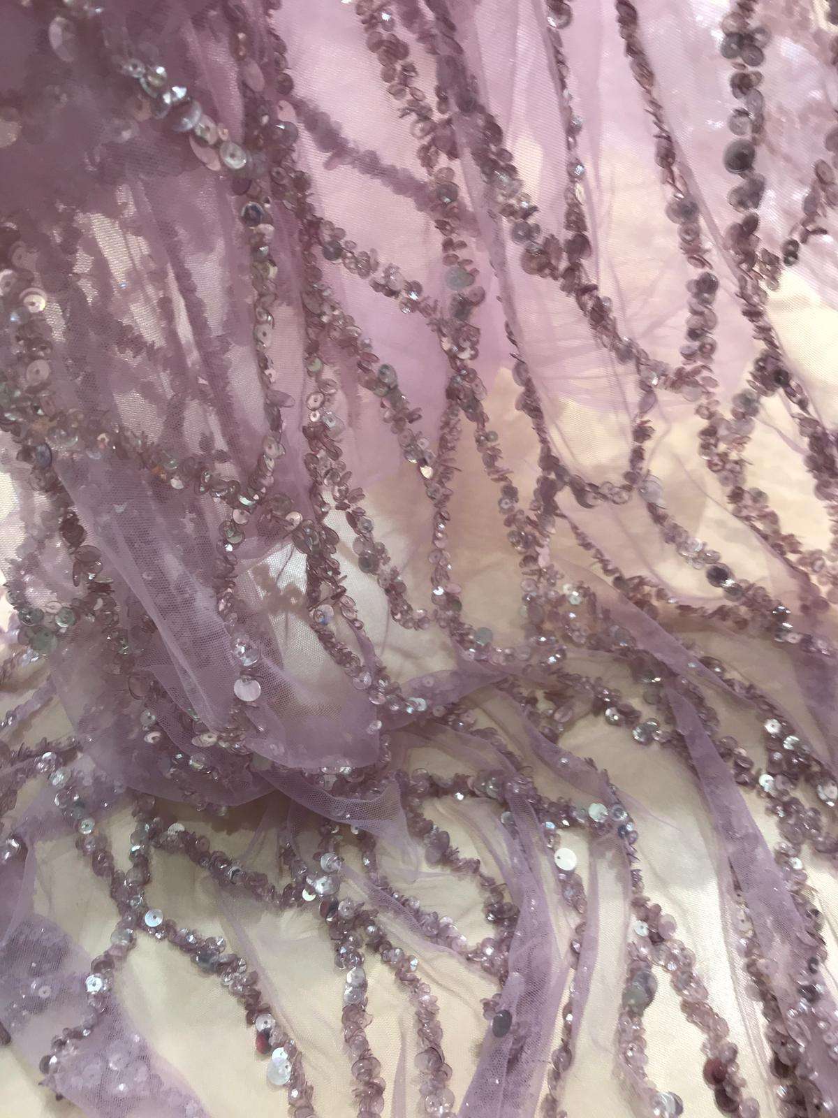 Dantela cu șiruri de mărgele și paiete este o tehnică specială de dantelă care implică încrustarea sau