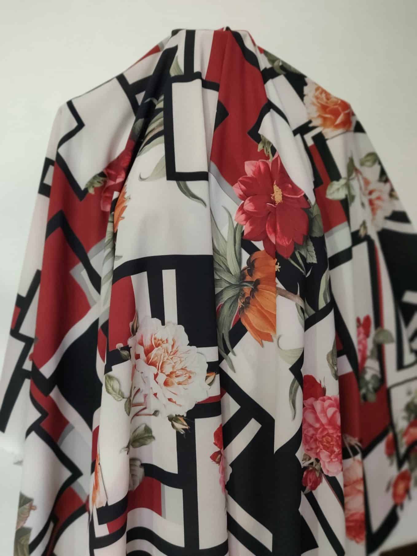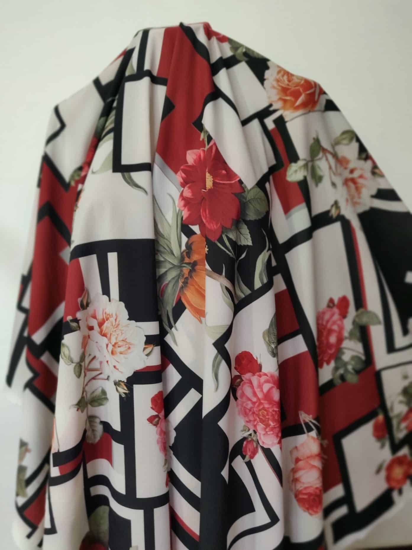 Material floral cu textură de poplin, ideal pentru cămăși, bluze si alte ținute casual.